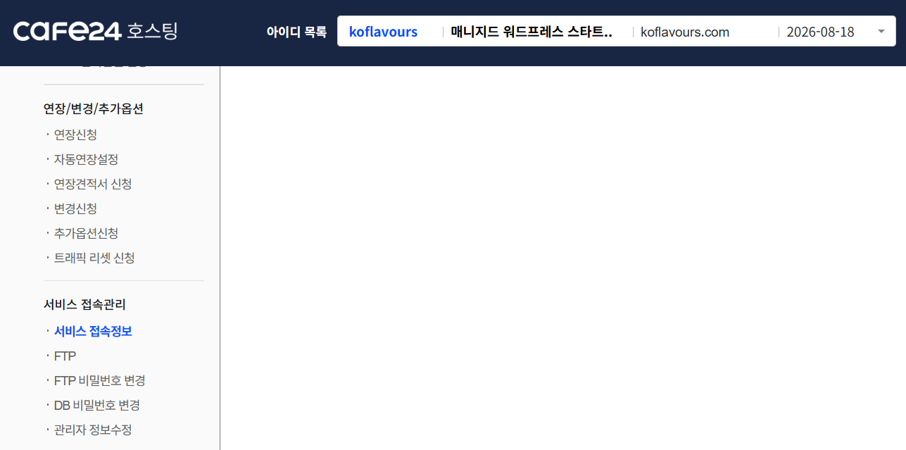이 정보를 바탕으로 FTP 클라이언트 프로그램을 통해 접속할 수 있습니다. 해당 정보는 나의 서비스관리페이지 - 서비스 접속정보에서 확인 가능합니다.