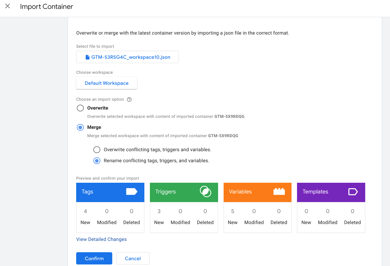 태그관리자는 태그, 트리거, 변수 등을 하나의 컨테이너에서 다른 컨테이너로 가져와서 사용하는 기능을 제공합니다. 이는 사이트 구조가 같은 여러 사이트에 동일한 전환, 이벤트 등을 설정해야 하는 경우 유용하게 사용가능합니다.