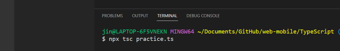 ※ 참고로, 타입스크립트 설치 시 '-g' 옵션과 함께 프로젝트 단위가 아닌 글로벌로 설치한 경우 npx명령어 없이 사용가능합니다.