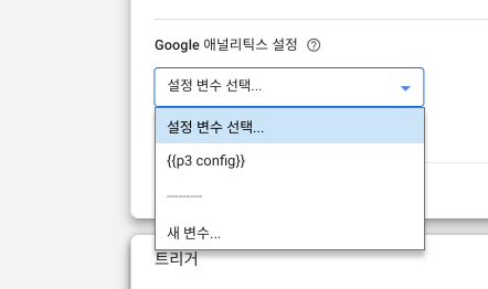 'Google 애널리틱스 설정' 항목에 '설정변수선택' -> '새 변수' 선택