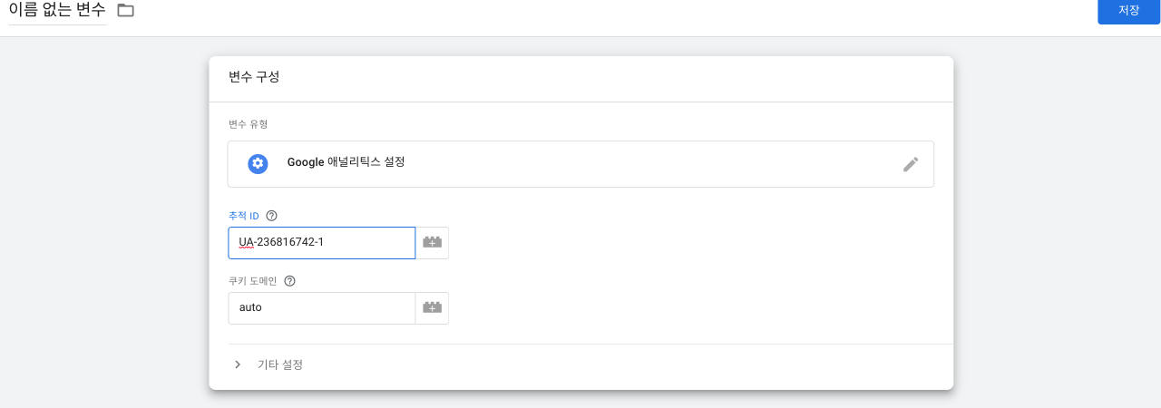 UA에서 복사한 추적 ID 붙여 넣고 '저장'