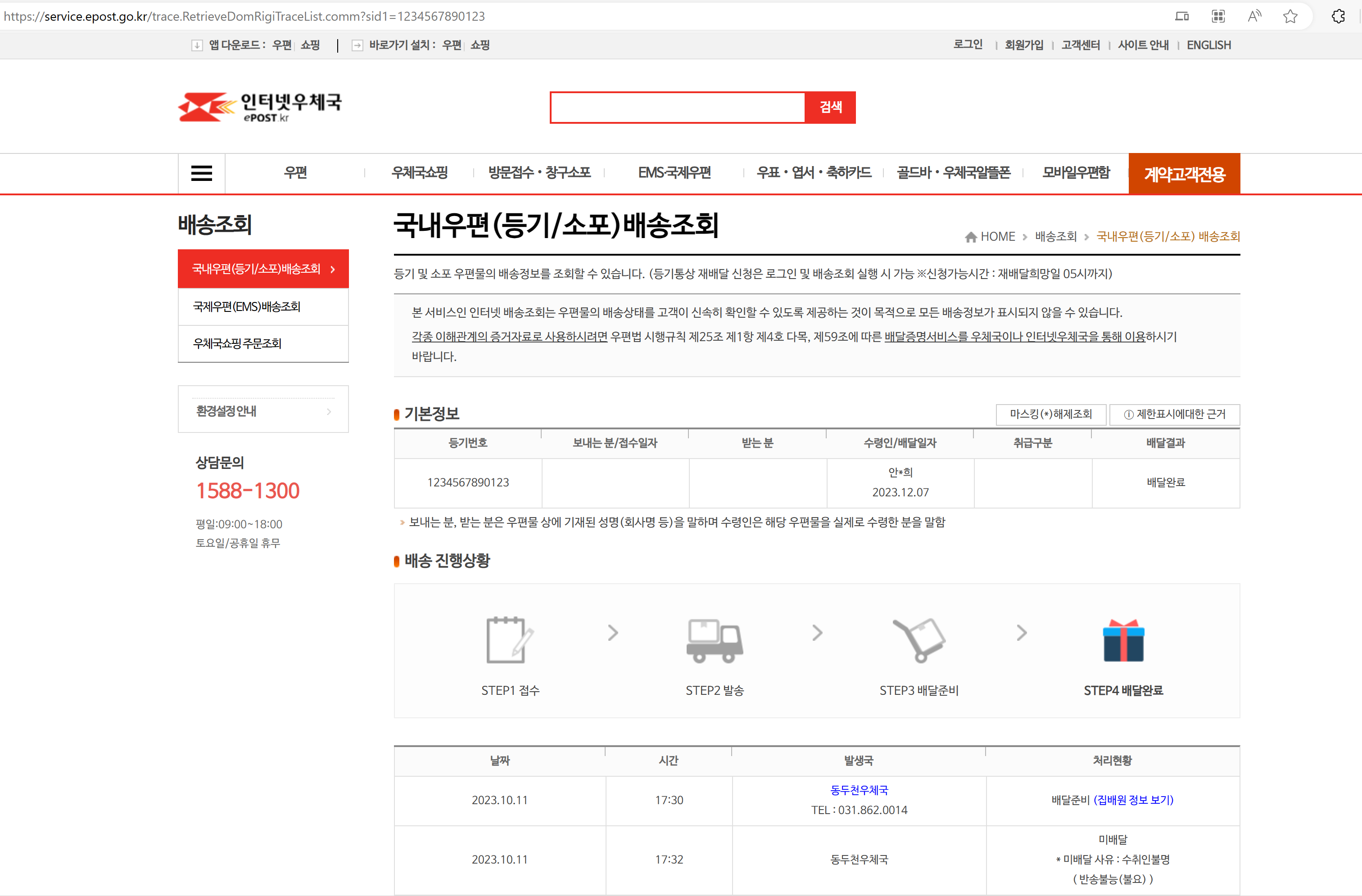 https://service.epost.go.kr/trace.RetrieveDomRigiTraceList.comm?sid1=<13자리등기번호>