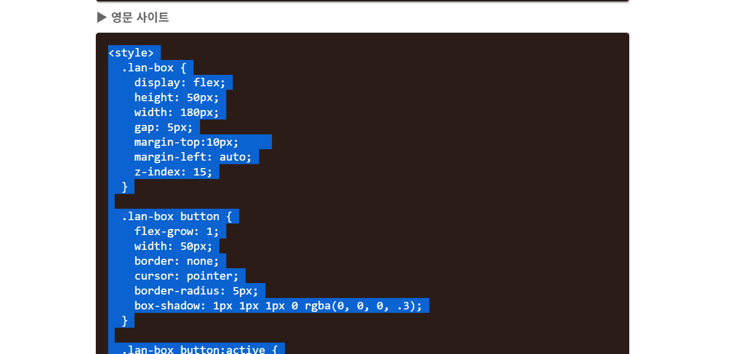 먼저, 다국어 블로그 포스트에서 필요한 코드를 복사 (언어변경과 이동링크 두 개 코드 필요)하고