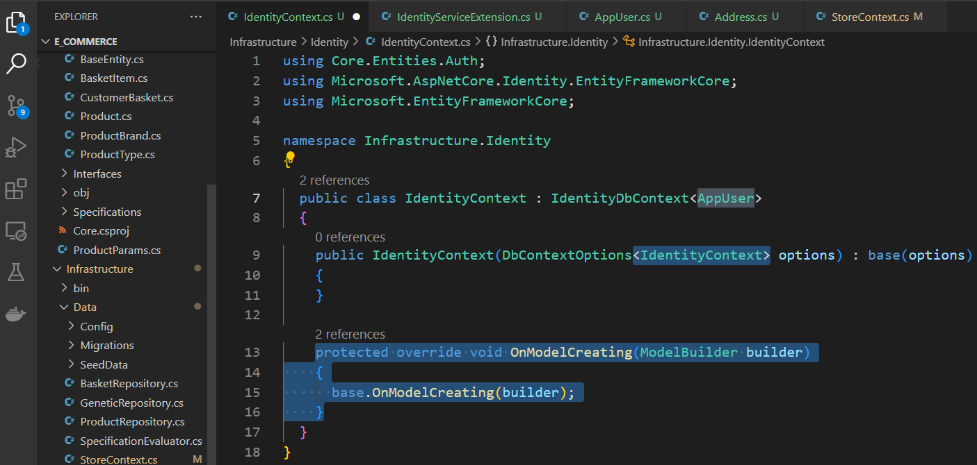 아이덴티티 서비스 익스텐션 클래스로 이동하여 아래 코드를 추가합니다