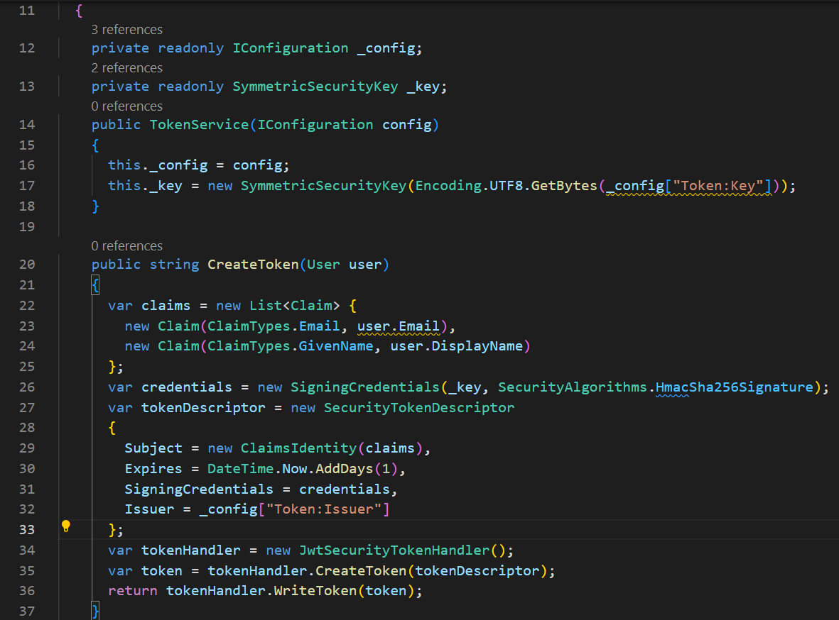 this._key = new SymmetricSecurityKey(Encoding.UTF8.GetBytes(_config["Token:Key"]));