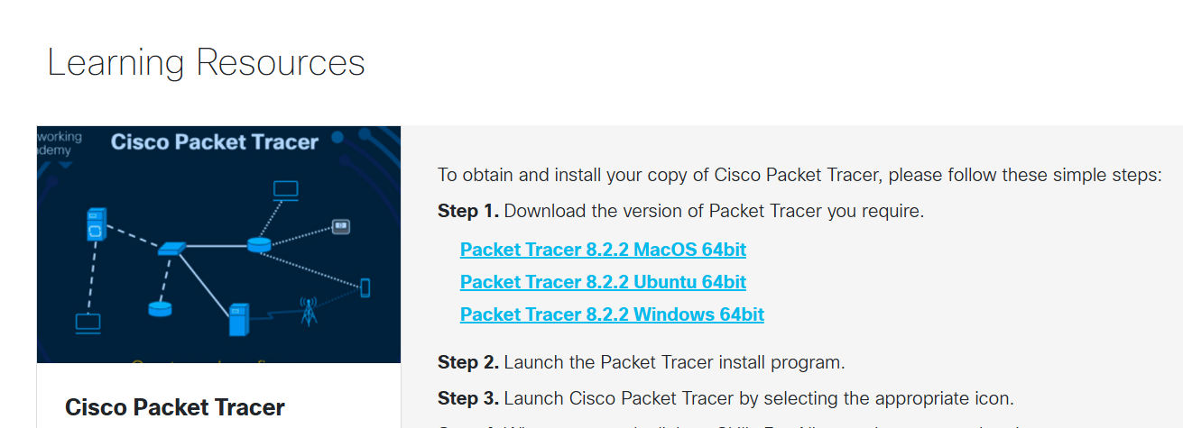 패킷 트레이서는 시스코에서 무료로 제공하는 네트워킹 시뮬레이터로 이를 활용하여 라우터, 스위치 등을 컴퓨터 등 단말기에 연결하거나 CLI를 통해 설정하는 등 다양한 연습이 가능하다. 패킷트레이서를 설치하는 방법은 아래와 같다.