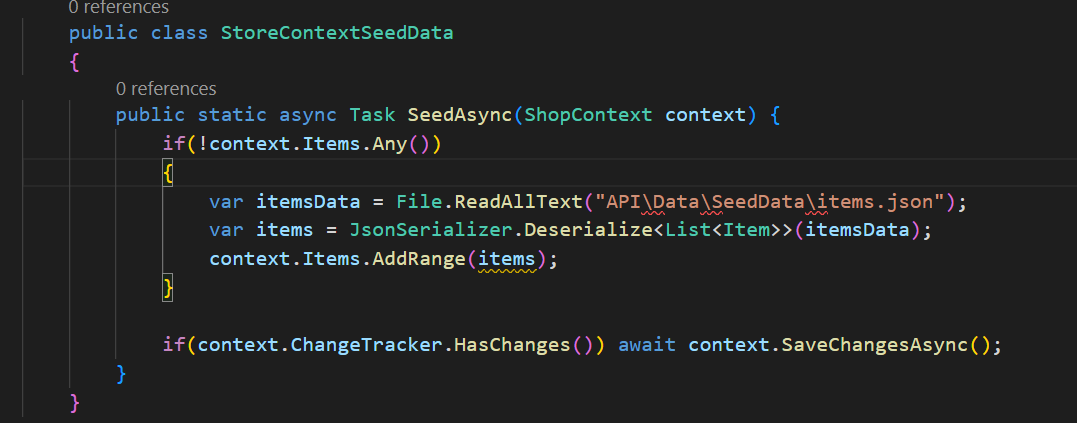 var itemsData = File.ReadAllText("./Data/SeedData/items.json"); // Read data from the file