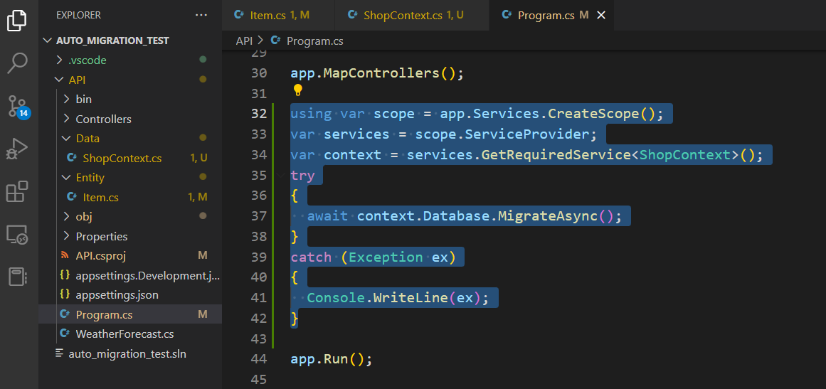 Add the code below to the Program.cs