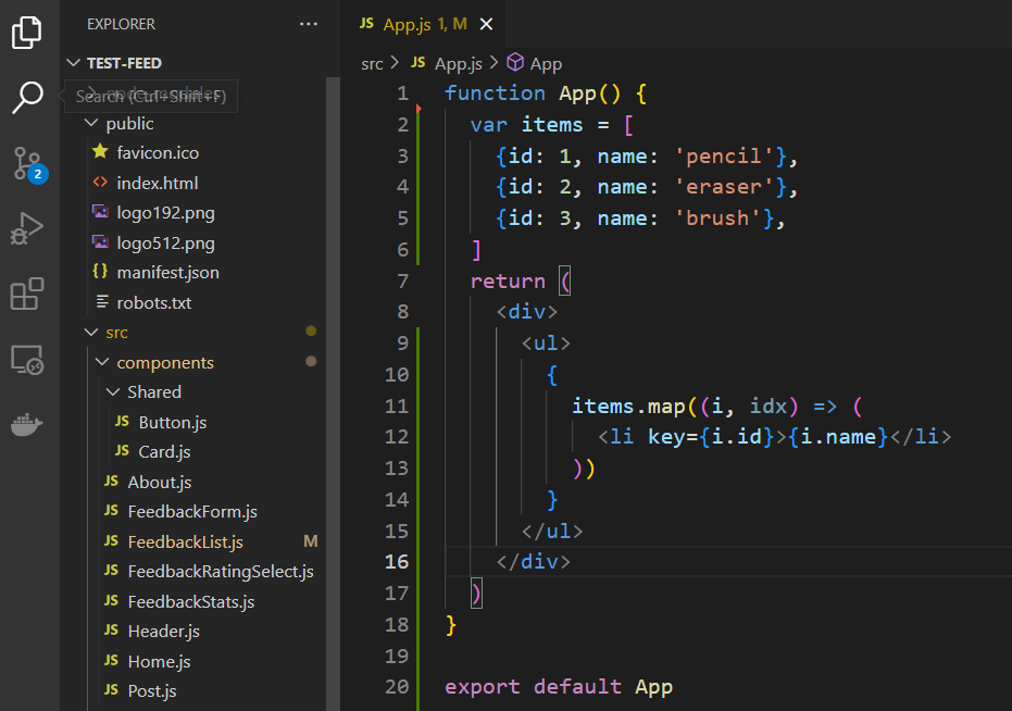 We are going to use the 'map' function to create a list as shown below. The key attribute is not required for this to work but if you do not specify each item with a unique Id, you will see an error in the console.