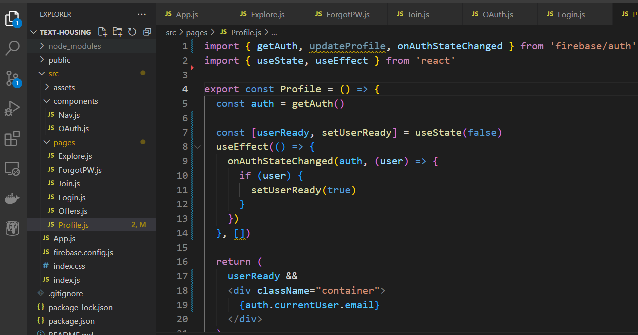 이를 방지하려면 컴포넌트가 활성화되는 시점을 조금 늦춰주어야 하는데, 이를 위해 onAuthStateChanged를 사용해 보겠습니다.