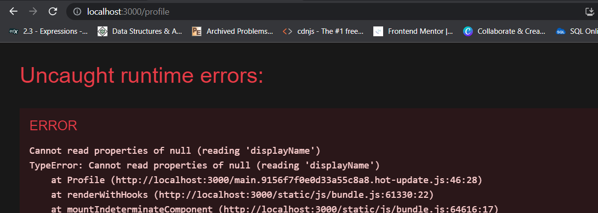 ★ 화면을 새로고침 하면 컴포넌트가 표시되는 시점이 유저의 정보를 가져오는 시점보다 빨라지기 때문에 아래와 같이 컴포넌트에서 유저를 인식할 수 없게 됩니다.