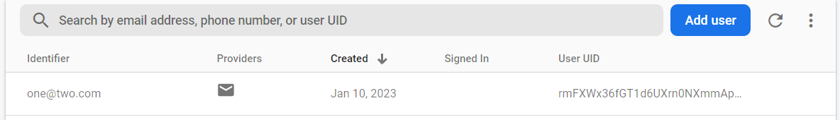 회원등록이 되면 파이어베이스에 유저로 등록되지만 해당 데이터를 데이터베이스에 저장된 테이블에서 참고하는 것이 어렵기 때문에 데이터베이스에서 유저를 참고할 필요가 있는 경우 유저 테이블을 만드는 것이 유리합니다.