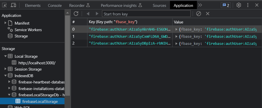 ※ To persist the user information on the browser, Firebase uses Indexed DB to store the record
