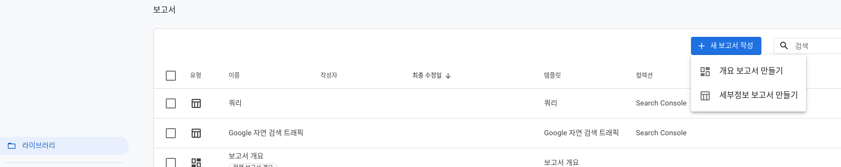 ※ 라이브러리에서 보고서 개요를 생성하는 것도 가능합니다.