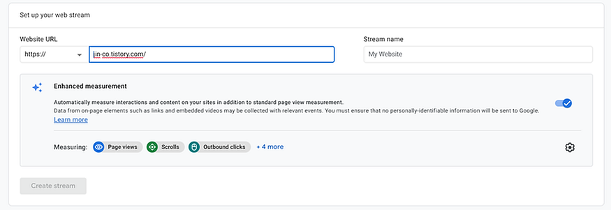 Type in the domain name of your website and enter ‘Stream name’. Then you are finished.