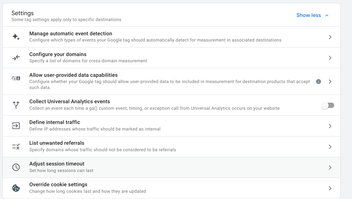 https://support.google.com/analytics/answer/9191807#zippy=%2Cadjust-session-timeout