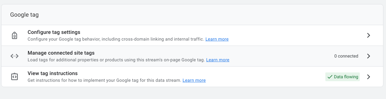 In the Google Analytics account, go to 'admin' -> 'data stream' under the attribute -> click the stream