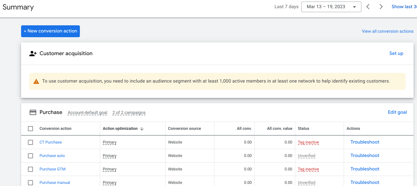 Click ‘+New conversion action’