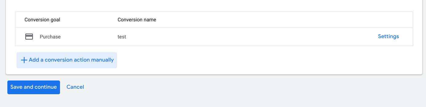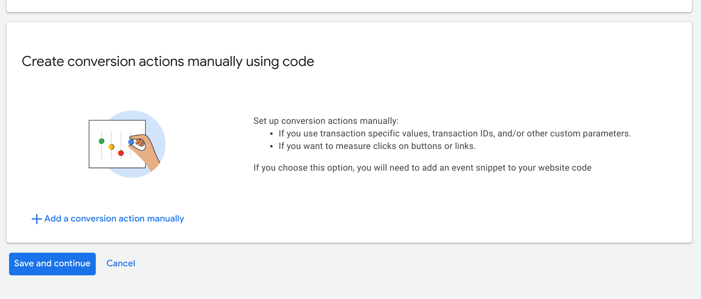 Afterscanning your website URL, go to the bottom and click ‘+ Add a conversion action manually’