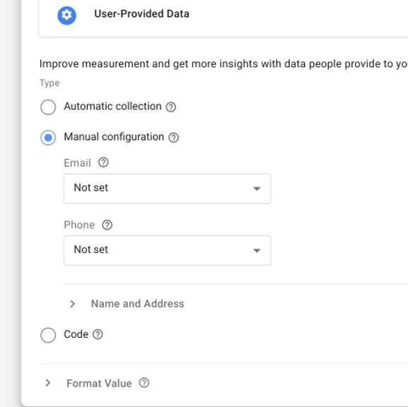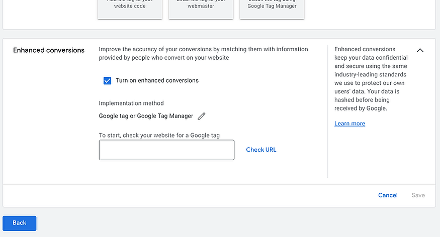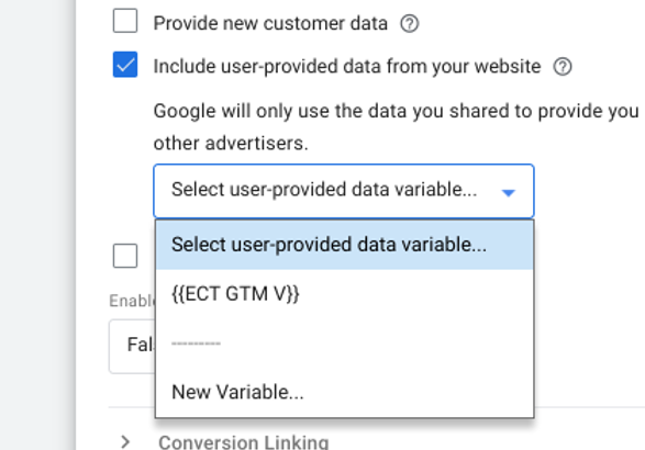 Click and open the ‘Enhanced conversions’ box at the bottom