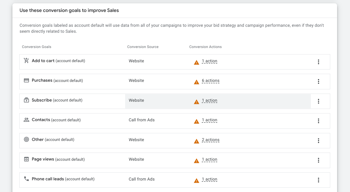 Check conversions (optional) - to remove, select the three dots on the right