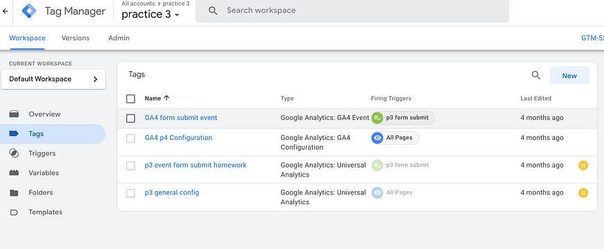Open GTM and choose ‘Tags’ -> ‘New’