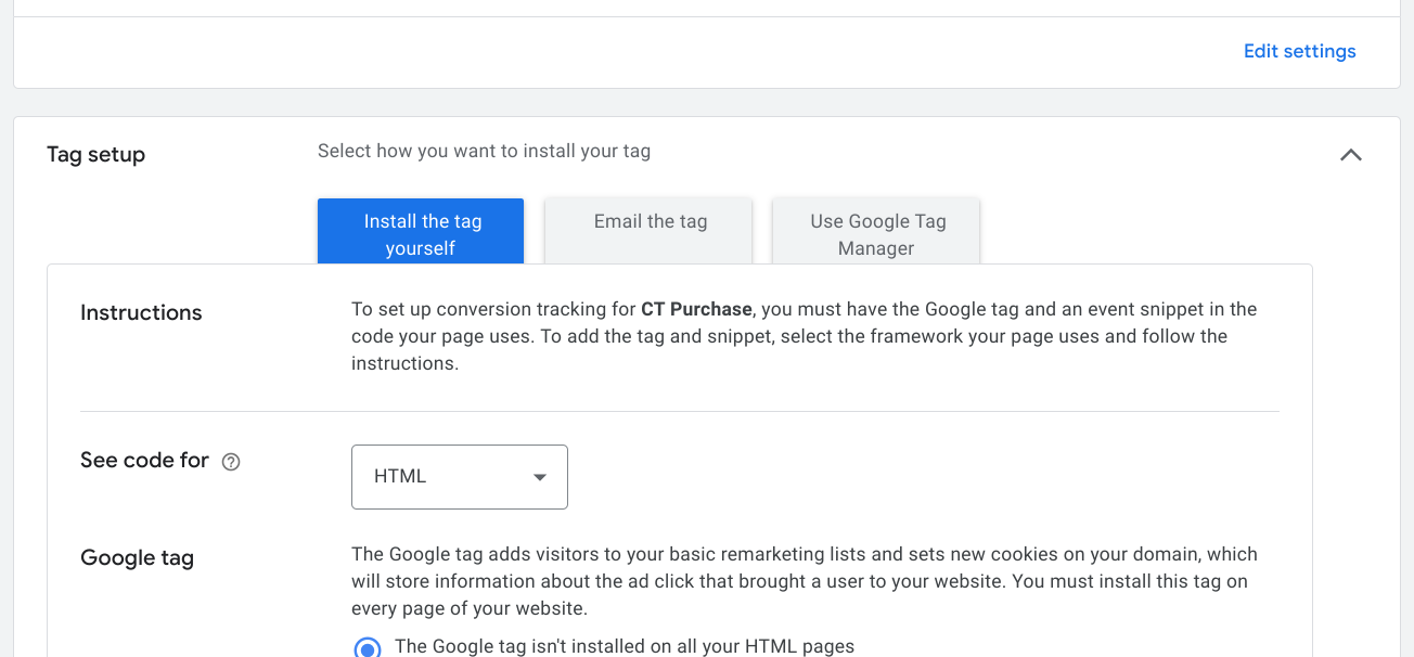 Click ‘Install the tag yourself’