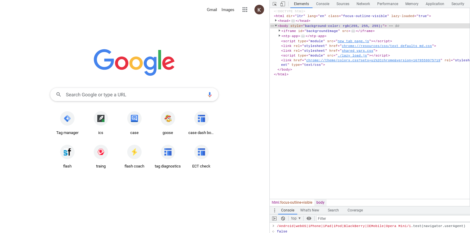 /Android|webOS|iPhone|iPad|iPod|BlackBerry|IEMobile|Opera Mini/i.test(navigator.userAgent)When you put the code in the console and run it, you will see that it only returns 'true' when the device mode is set to mobile