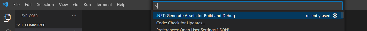 ※ Unlike its big brother VS Code needs additional steps to add tools to use some of the features that working with C# easier such as debugging. Enter '.NET: Generate Assets for Build and Debug' in the search bar on top.
