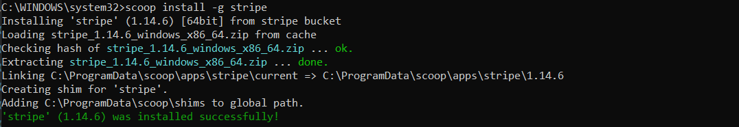 scoop bucket add stripe https://github.com/stripe/scoop-stripe-cli.git