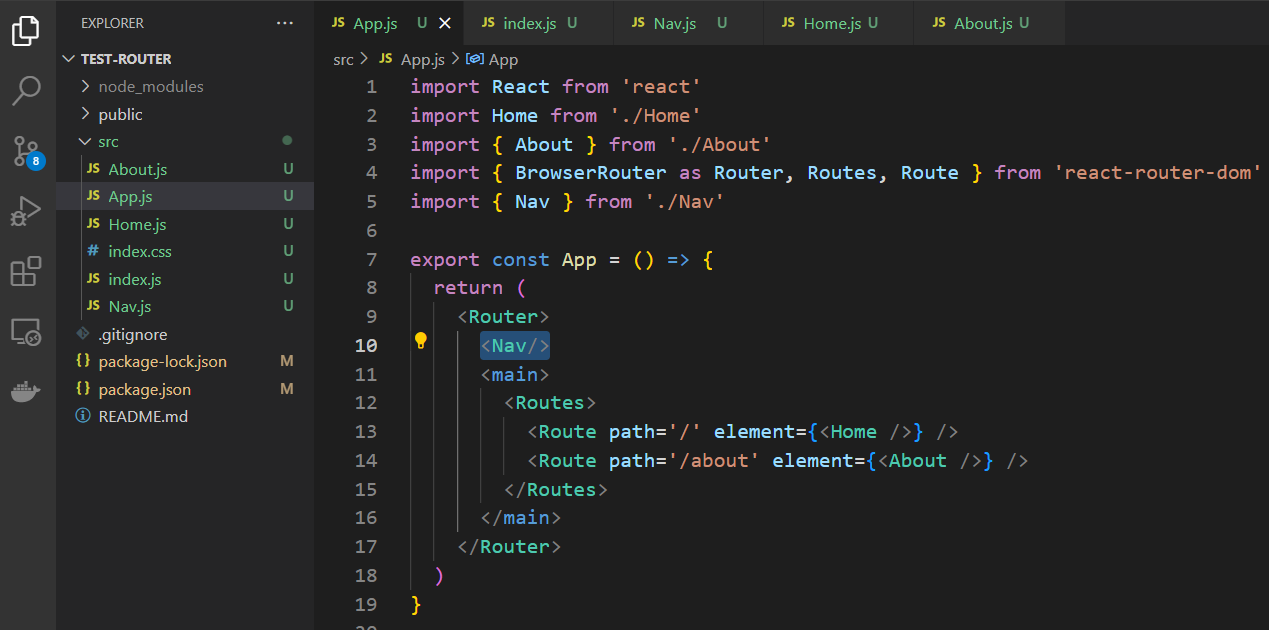 <Route path='/about' element={<About />} />