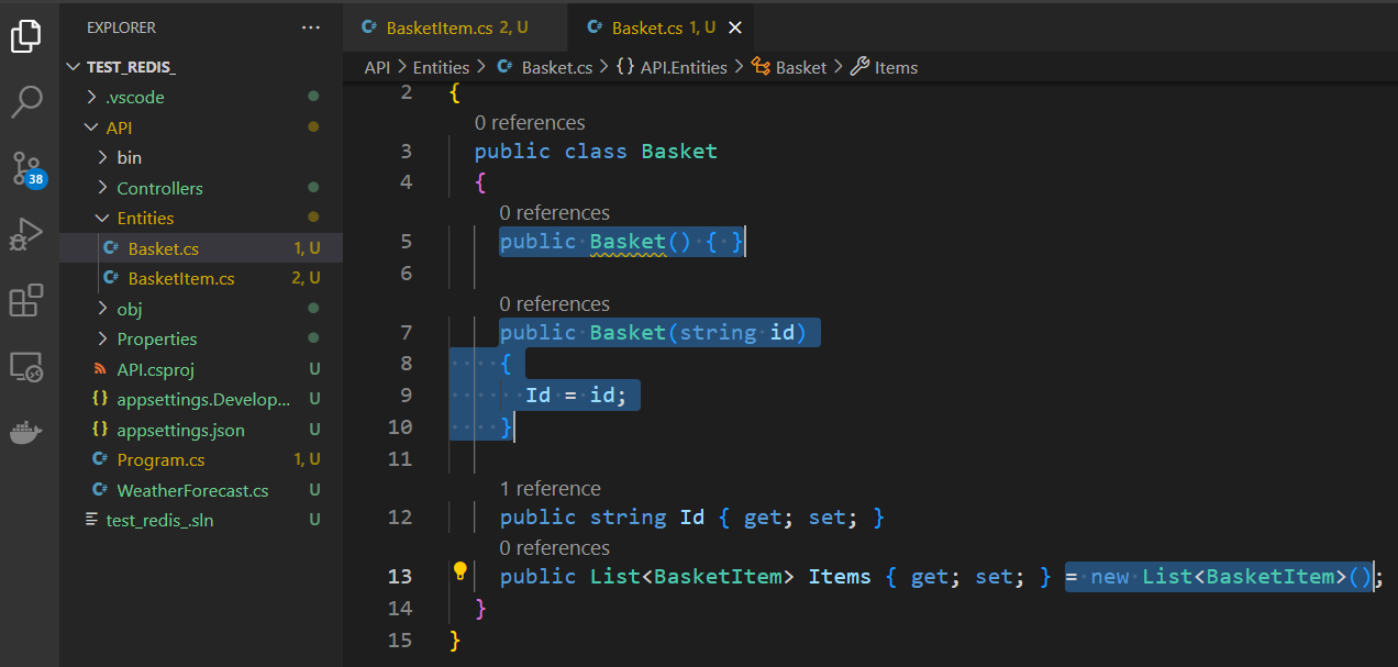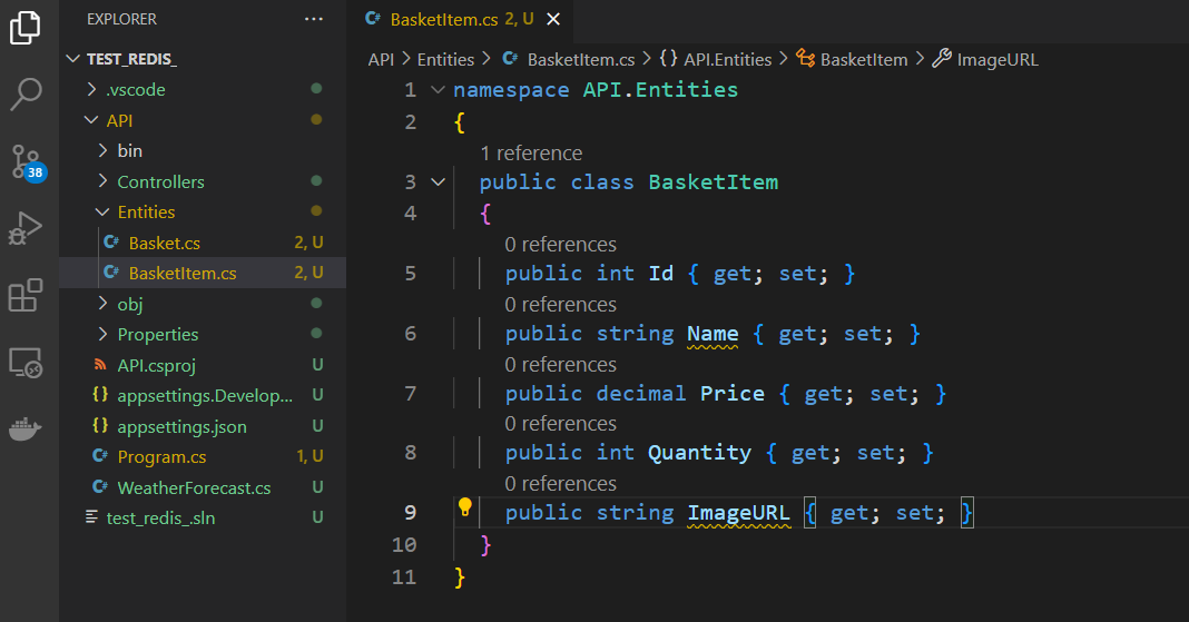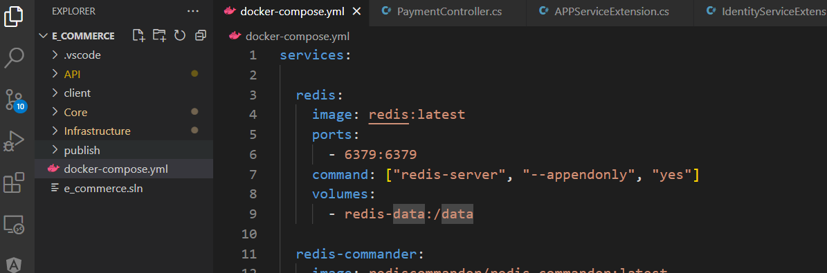 Go to the 'appsettings' file and add a connection string for Redis to use as an environment variable