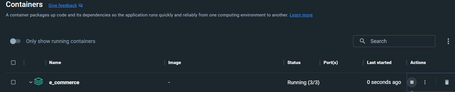 Open the docker desktop and run the containers