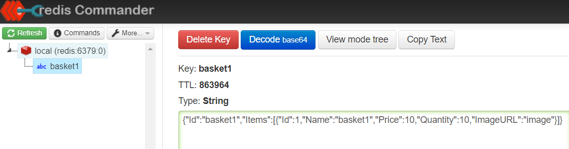Open the Redis Commander to see the data