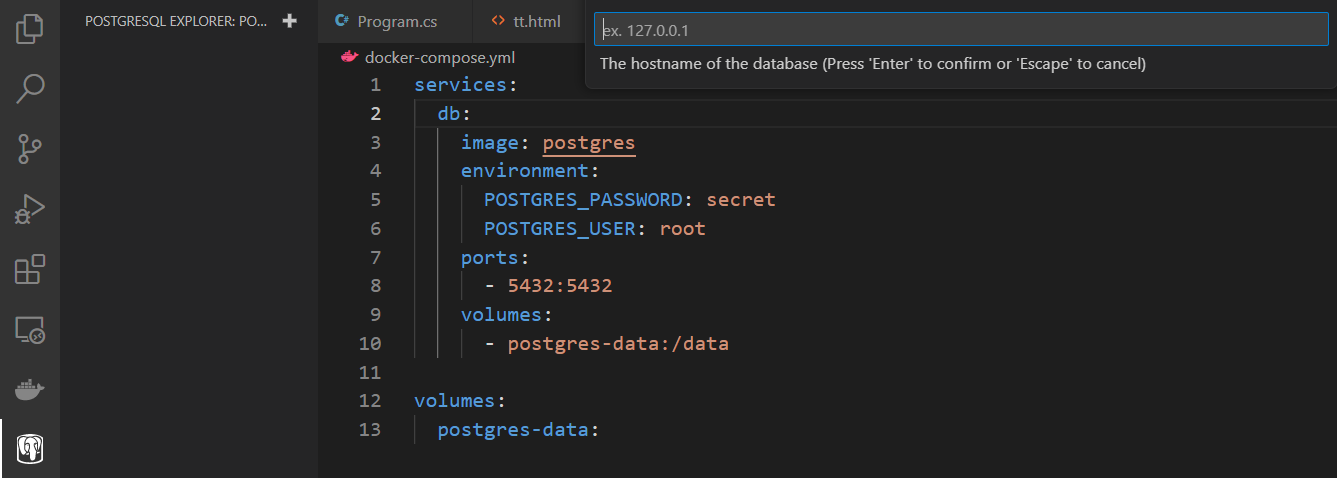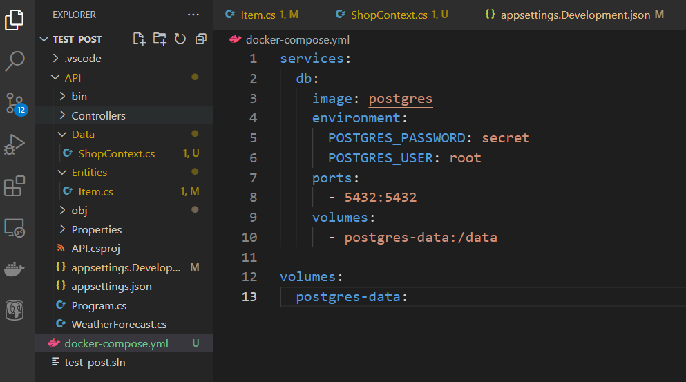 We need a configuration to create a database in the Docker. Download the .yml file below and save it to the root of your project folder.