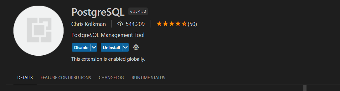 This package allows us to work with Postgres. Check the box and click Install.