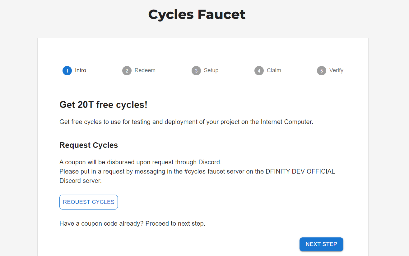 Then request a coupon in the '#cycles-faucet' chat.