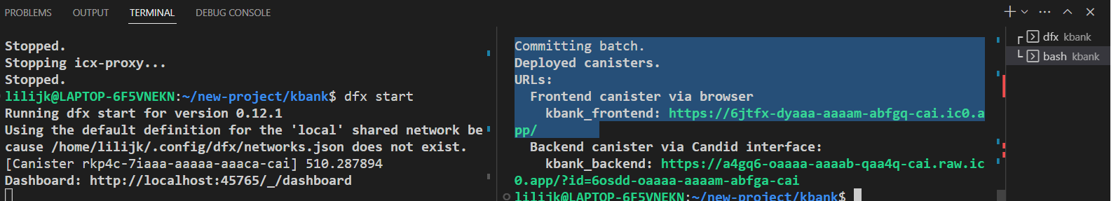 If you see 'Deployed canisters' then everything is all set. Click the link for the frontend under URLs.