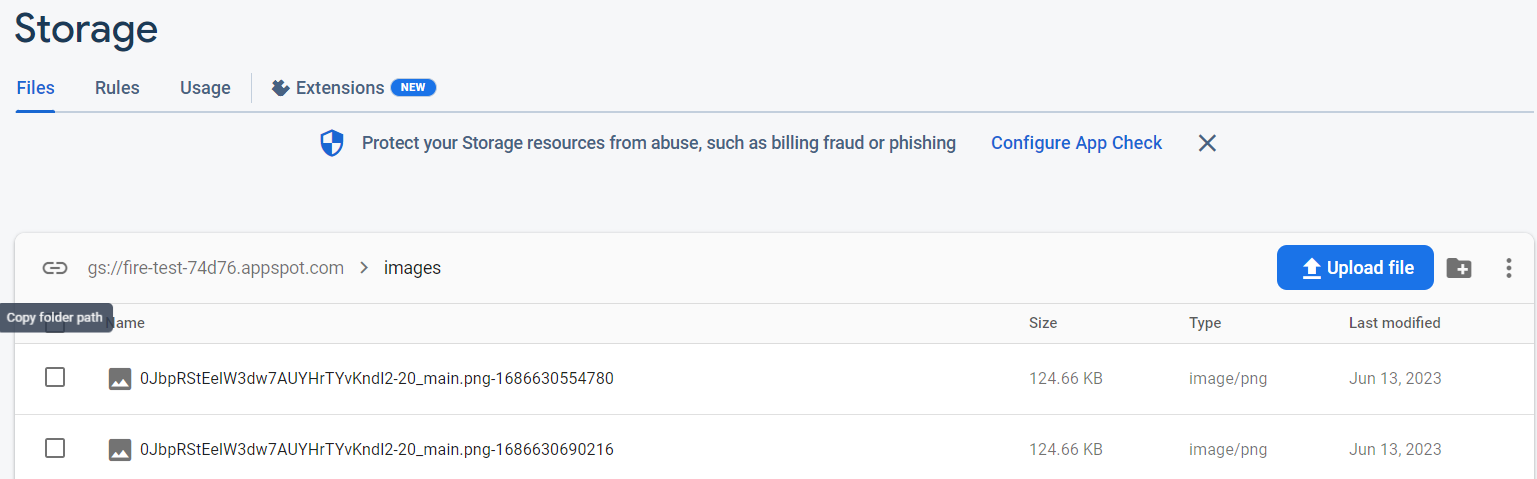 파이어베이스에서 업로드된 이미지 확인이 가능합니다.
