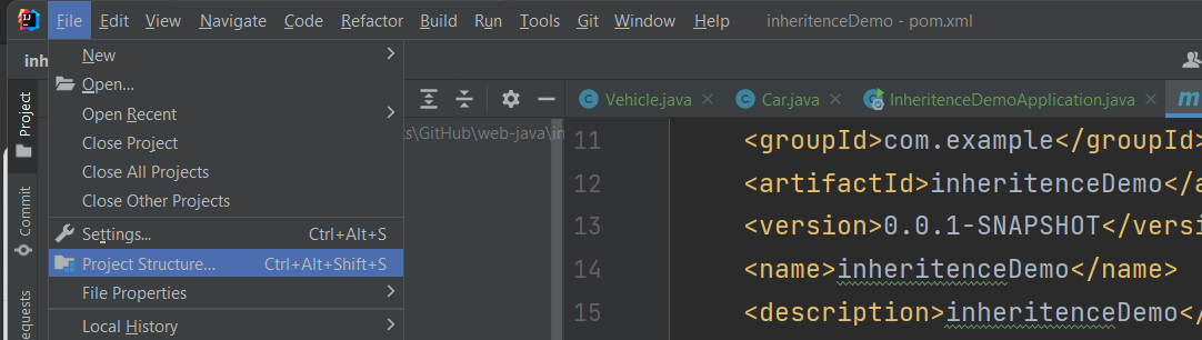 파일 -> 프로젝트 설정에서