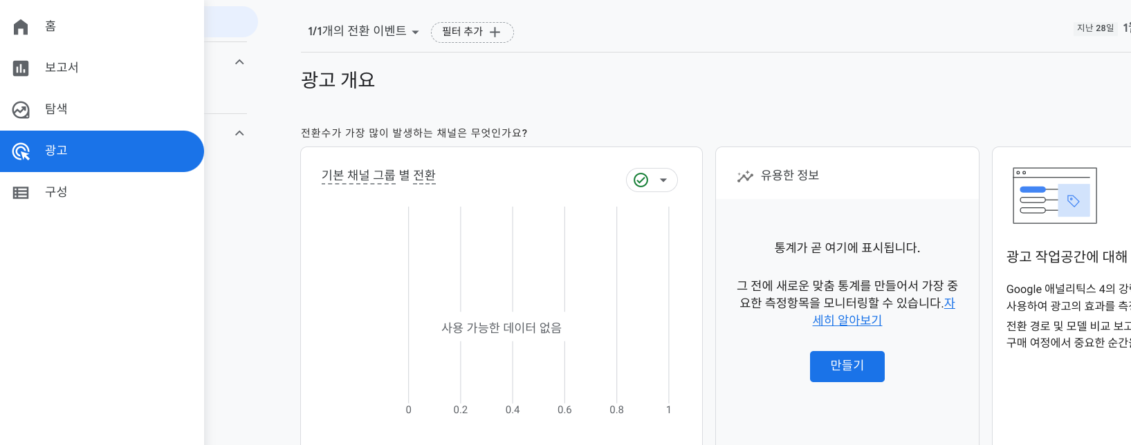 구글애즈 캠페인 획득 보고서 활성화