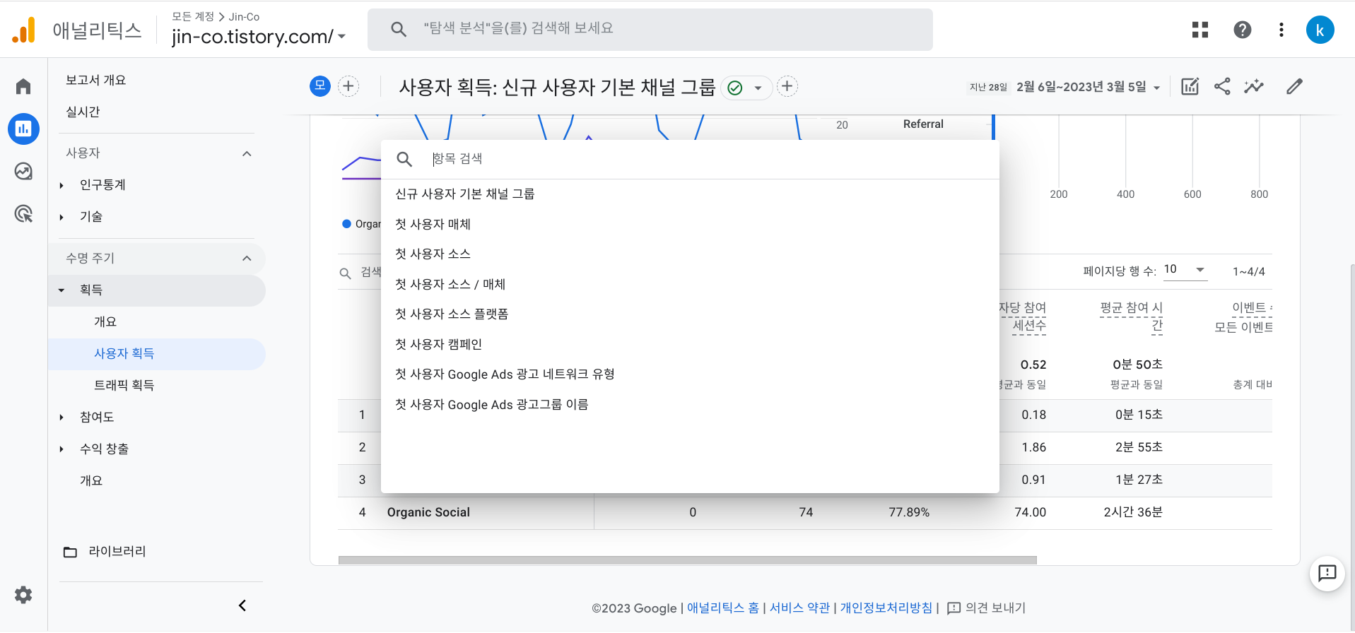 구글애즈에 생성된 캠페인을 애널리틱스 획득 보고서에서 확인가능합니다.