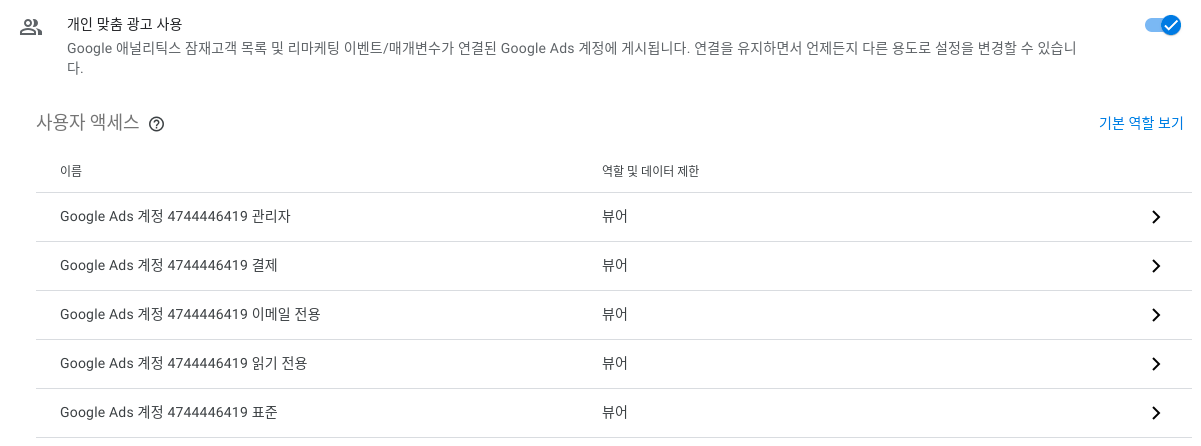 ▶ 연결된 애널리틱스에서 애즈 계정 권한 변경하기